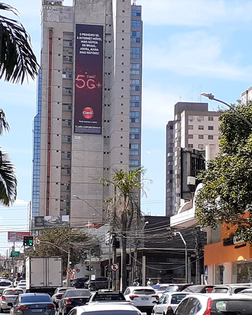 Destaque sua marca em grande estilo com anúncios monumentais e permanentes em fachadas.